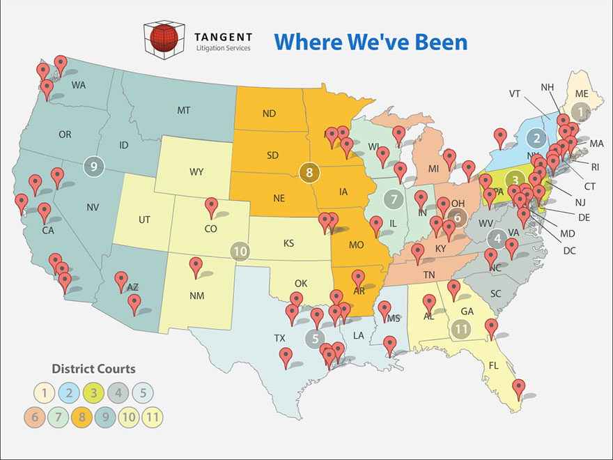 Tangent has delivered presentations all over the country. See the federal courthouses across the nation, & smaller ones in between we've been in!